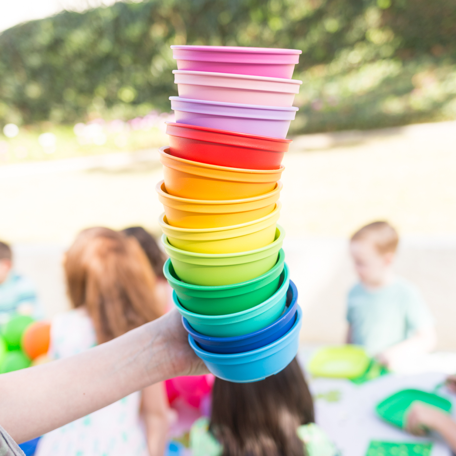 Our recycled plastic tableware is loved by kids and adults alike. Manufactured in the USA from recycled, food-safe plastic, using materials and vibrant color concentrates that meet strict FDA and EU purity standards. We’ve saved over 100 million milk jugs—our primary source of material—from the landfill!